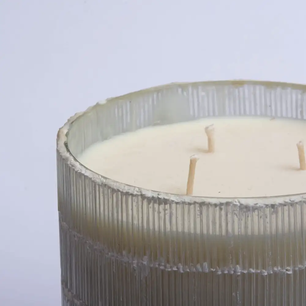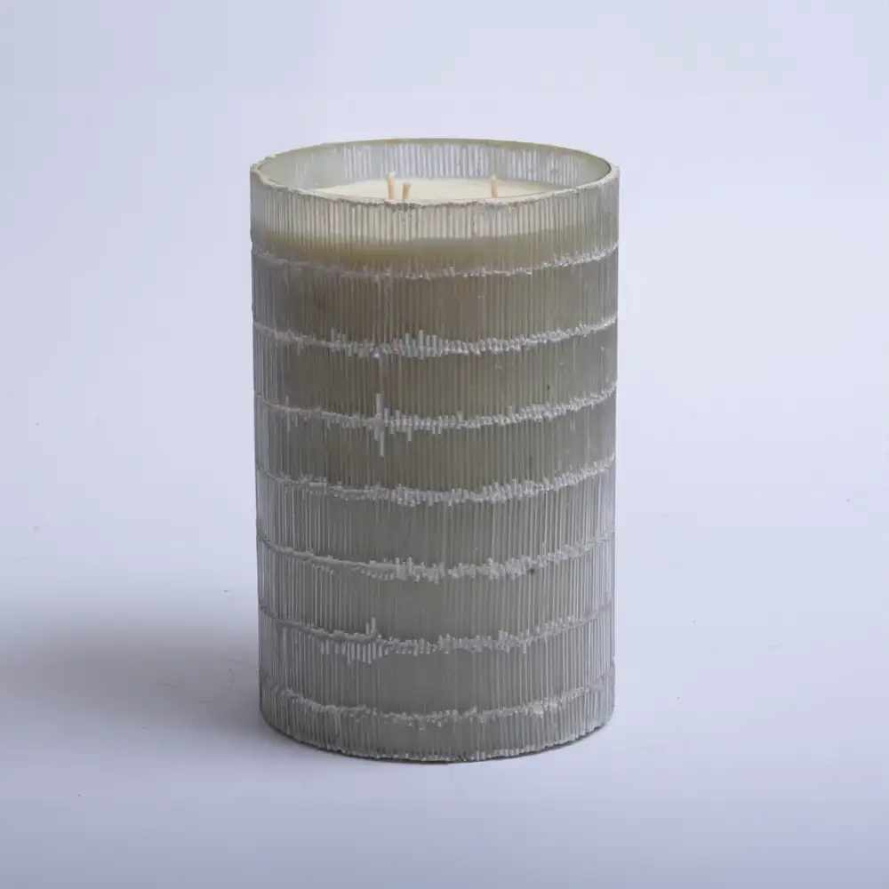 Minimalismo con carácter. Una vela que combina elegancia y textura en un recipiente facetado que capta la luz y eleva cualquier espacio.