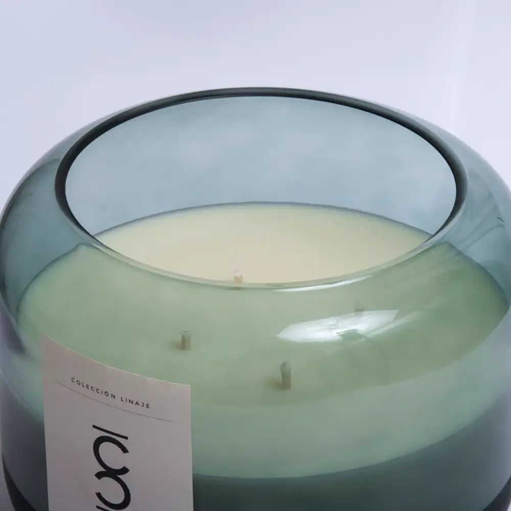 Con una silueta redondeada y un vidrio color esmeralda, esta vela transmite elegancia y calma. Su diseño orgánico y traslúcido evoca la serenidad del bosque y la frescura del aire puro.