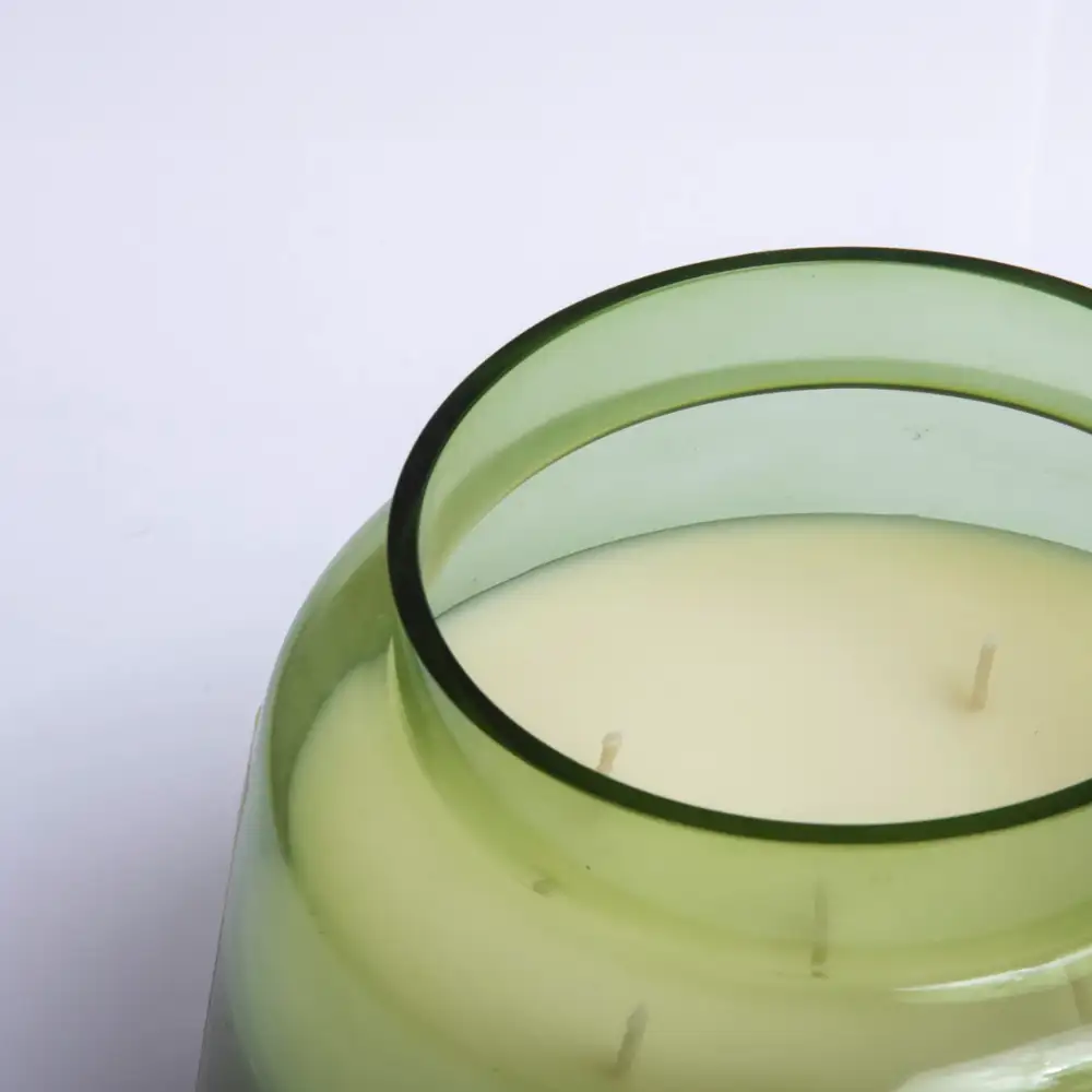 Una vela que invita a la calma con su color verde traslucido, como un soplo de naturaleza en tu espacio.